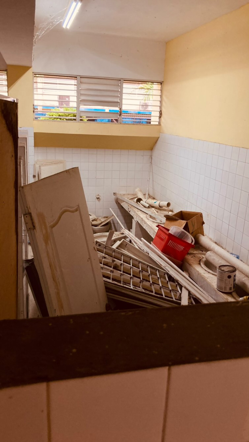 En el lugar se pudo visualizar que pocas aulas cuentan con un buen ambiente para desempeñar los estudios, ya que incluso hay aires tirados en el suelo y abanicos en mal estado, situaciones que representan un peligro para los estudiantes. Aunado a esto algunos baños no tienen electricidad.