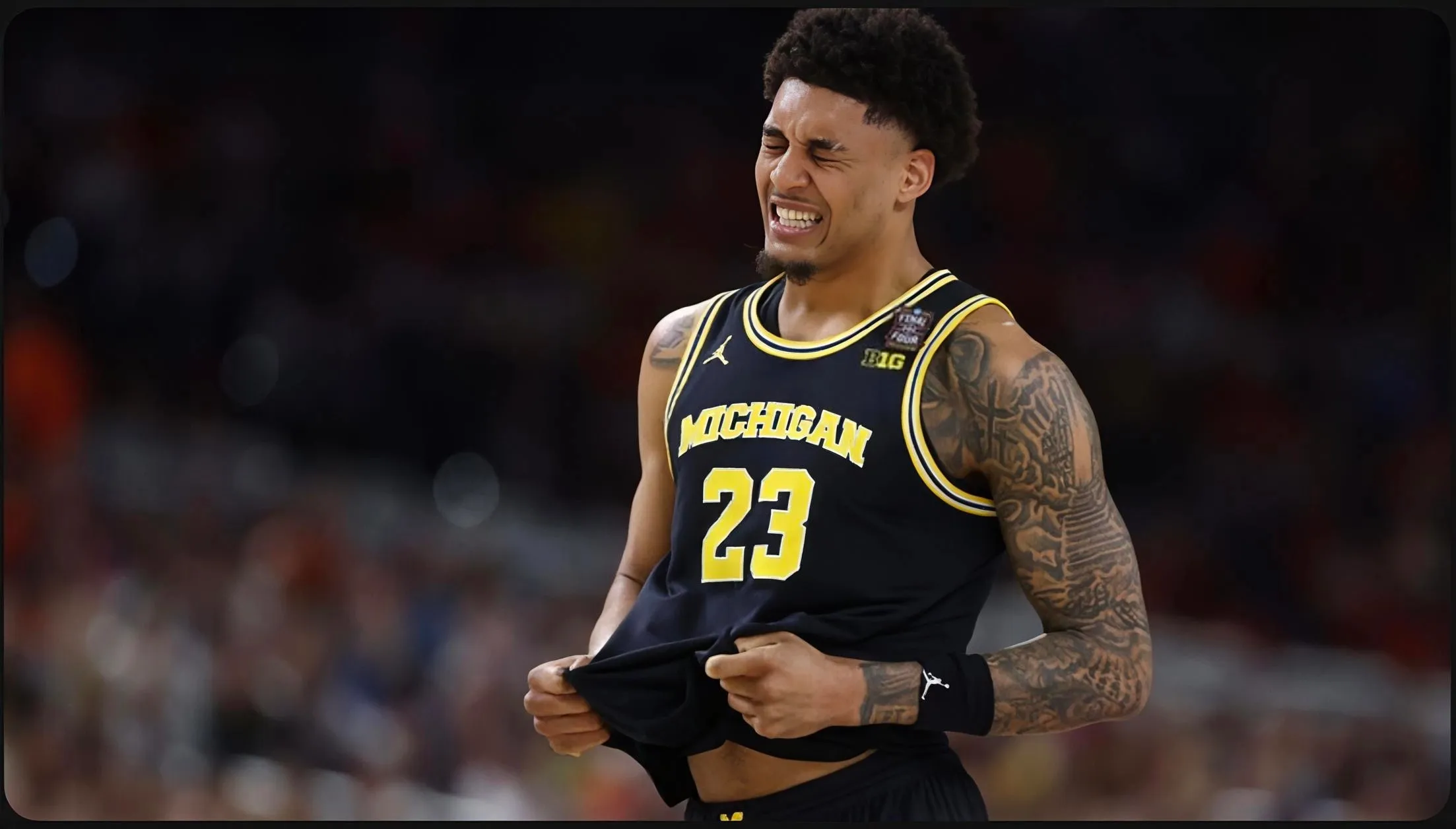 Michigan llegó a tener una ventaja de hasta 30 puntos a pesar de que Yaxel Lendeborg solo pudo jugar 14 minutos tras sufrir una lesión de tobillo y un esguince del ligamento colateral medial en la primera mitad.