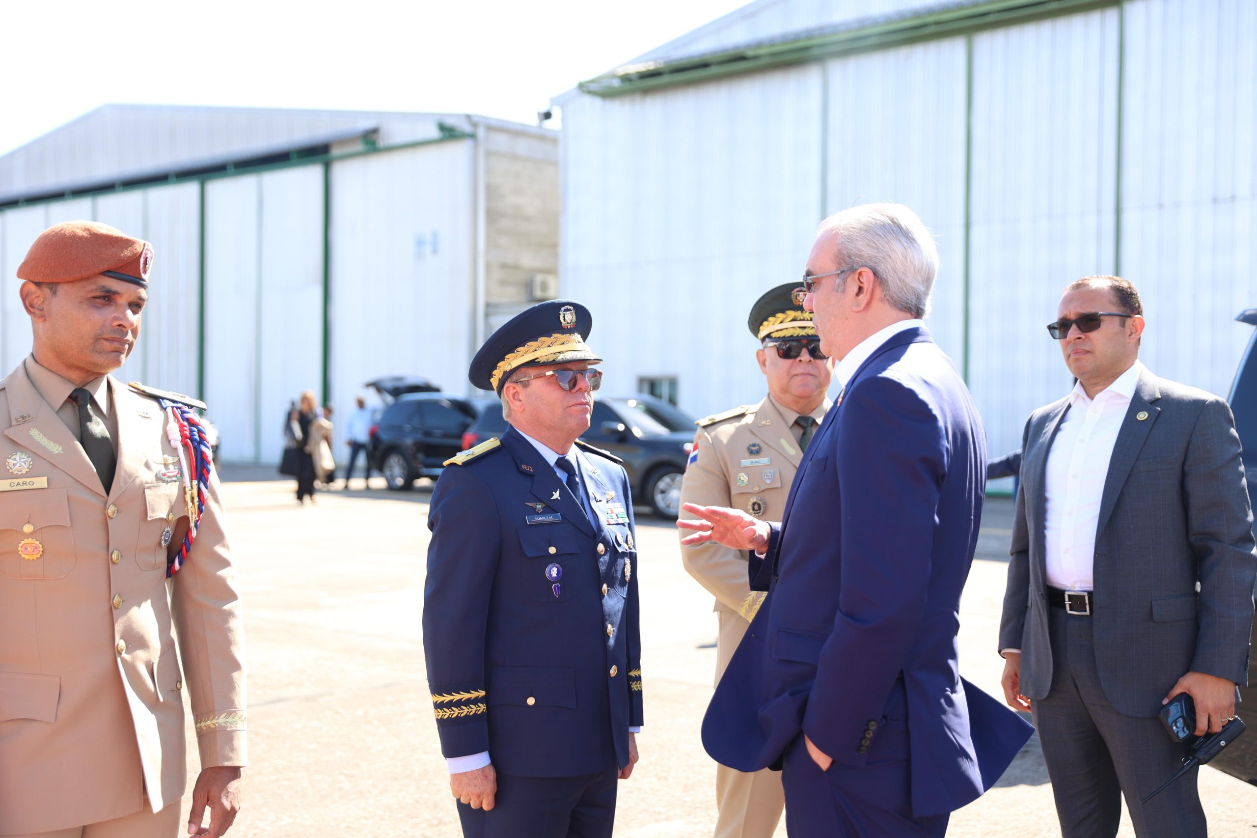 El mandatario salió a las 3:47 de la tarde desde la Base Aérea de San Isidro, donde fue despedido por el viceministro para Asuntos Militares del Ministerio de Defensa, mayor general Miguel Ángel Rubio Báez; el comandante general de la Fuerza Aérea de República Dominicana, Mayor General Piloto Floreal T. Suárez Martínez y los comandantes, de la Guardia Presidencial, general de brigada Guillermo Caro Cruz, y del Regimiento de la Guardia de Honor, teniente coronel Paula Fernández Jiménez.